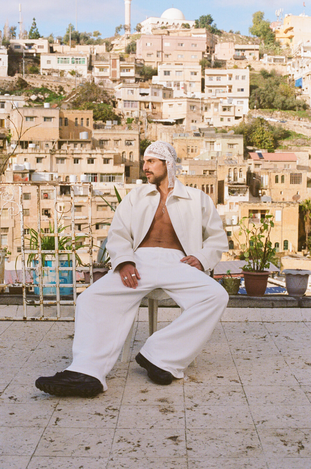 Avec son regard tourné vers l’horizon et ses mots chargés d’histoire, Saint Levant, alias Marwan Abdelhamid, incarne une voix unique et puissante, née au carrefour de cultures et de luttes. Né à Jérusalem pendant la deuxième Intifada, d’un père serbo-palestinien et d’une mère franco-algérienne, il a grandi à Gaza, avant que la guerre ne pousse sa famille à l’exil en Jordanie, puis à Los Angeles.